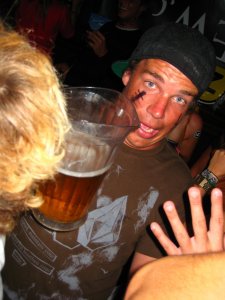 Upon moving from Minnesota to Newport I met the most maniacal mix of young men. The boys of shorescrew have a local and internet legacy of blowing shit up, surfing, and throwing parties at which anything can and usually does happen. You can check out all their madness and glory at shorescrew.blogspot.com. All the photos below are from Malarky’s last Wednesday where they threw their most recent event. It was a great time and everyone wore their shit faces with pride. These are the only guys I know that could convince everyone at a party to participate in a conscious war painting contest for free gear. Though I sadly don’t have a photo of it, my personal winner was tommy who sported a magic marker eye patch and mustache!! A big thanks to you guys for bringing us all together… as if we needed an excuse to get wasted on a Wednesday night!!