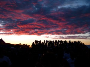 The clouds broke and the sun shone just in time for Atmosphere on the main stage.