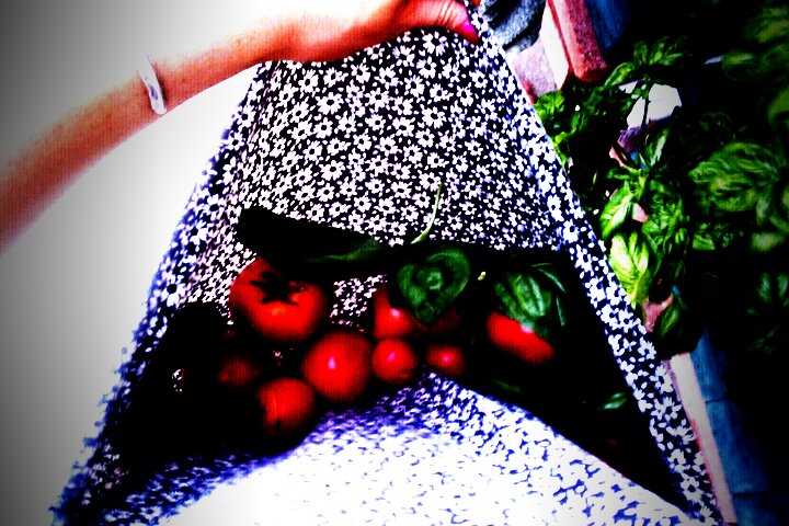 Dear Lord, please turn down the furnace in southern California. It is way too hot to think, move, breathe, love, and even sleep!! I would however like to thank you for the bounty from the garden. From which I will make a delicious bruschetta and then have a bottle of wine. Bon.