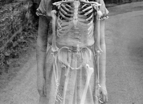 I let the bourbon sit and burn on my tongue while he spoke. I listened in the sort of way one listens after three glasses of bourbon. He started talking about bones, the bones in my arm, the thin ones I had spoken about wanting to get tattoos on in French. He started telling me a broken heart is a broken bone, though as I argued, there are no bones in the heart. He said, it feels the same and it heals the same and if you don’t set it proper it will still heal but in a strange and crippled way. As he spoke I made hard choices of which eye to look into because at such a short distance it is impossible to look into both, and I could smell the bourbon on his breath but I didn’t wonder why we were so close. I started drumming on the bar top and singing, Love like lightning shaking till it moans, Hearts and bones, Hearts and bones… I don’t know nothin’ about nothin’ about no Mexico… And he let me keep going until I was tired and then we both agreed on the genius of Paul Simon and drank to that, laughing at the things that were not there to laugh at. So we spoke more on bones and I was interested because that night I had seen Leslie Jamison read at the University and she also had long and bony arms like my own. And while she read she spoke on bones and hearing the words on her lips and the rhythm of her own writing clatter out from beneath her tongue, I felt my bones sitting quietly under my skin. And in one quick moment I felt the idea or the ghost of mortality pressing in or sitting next to me in a way I don’t remember ever being quite so aware of. Hearts and Bones..